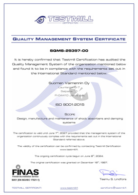 - ISO 9001:2015 quality management (certified by Testmill Ltd)